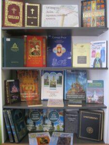 В отделе краеведения Центральной городской библиотеки к этому дню подготовлена выставка книг из фонда редких изданий. Представлены Библия и Новый Завет в переводе на удмуртский язык, Собрание трудов Патриарха Кирилла, Православная энциклопедия, книги «Православие в России» В.О. Ключевского и «Русские святые» В.Н. Крупина, «Проповеди» архимандрита Иоанна (Крестьянкина) и другие издания.